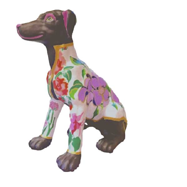 Enhance your home décor with this beautifully crafted black Dog, featuring an exquisite hand-painted floral design. This handmade resin Dog showcases delicate pink and purple blossoms with lovely flowers, creating a striking contrast against the sleek black background. Individually signed as part of the exclusive Painted Pigs collection, this seated Dog ornament is perfect for collectors and dog lovers looking for a unique statement piece.